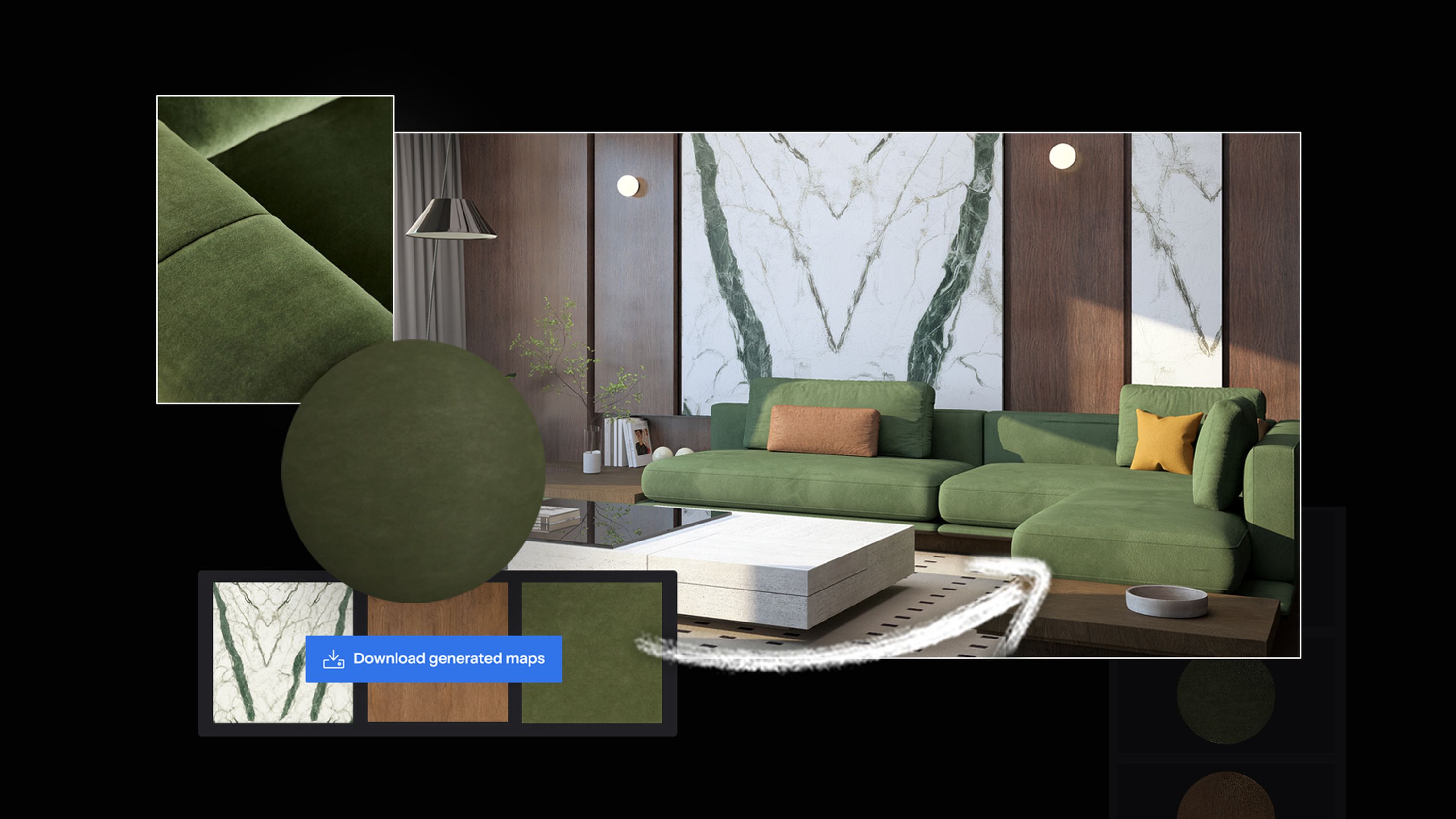 Turn any reference image into a ready-to-use material. With the new AI material generator in Lumion Cloud you can create seamless, tileable PBR material maps.
