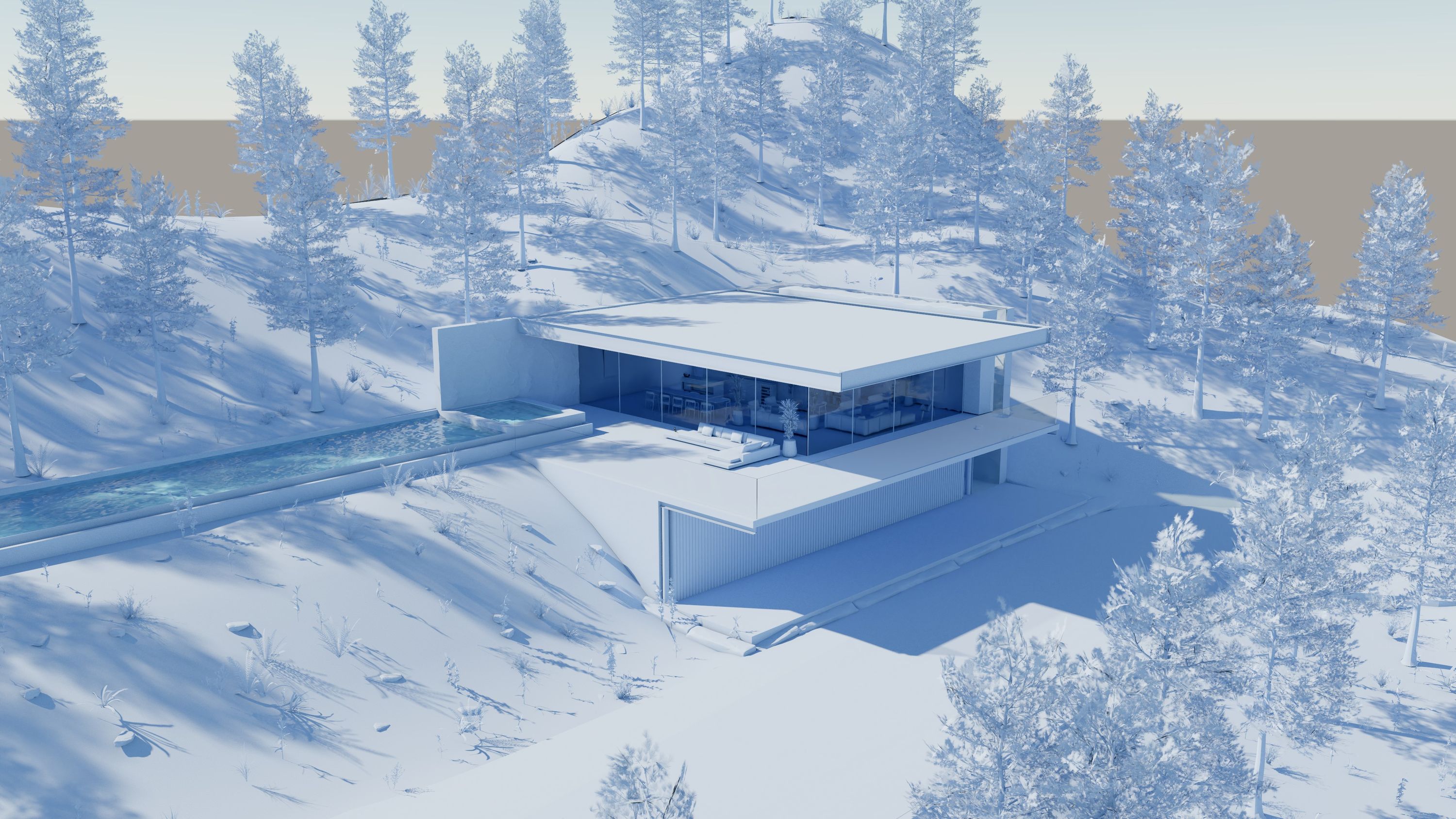 Achieving a clean, minimalistic aesthetic often used for conceptual renderings.